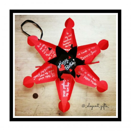 Cute explosion card flooded with personal thoughts and include 1 picture at center.